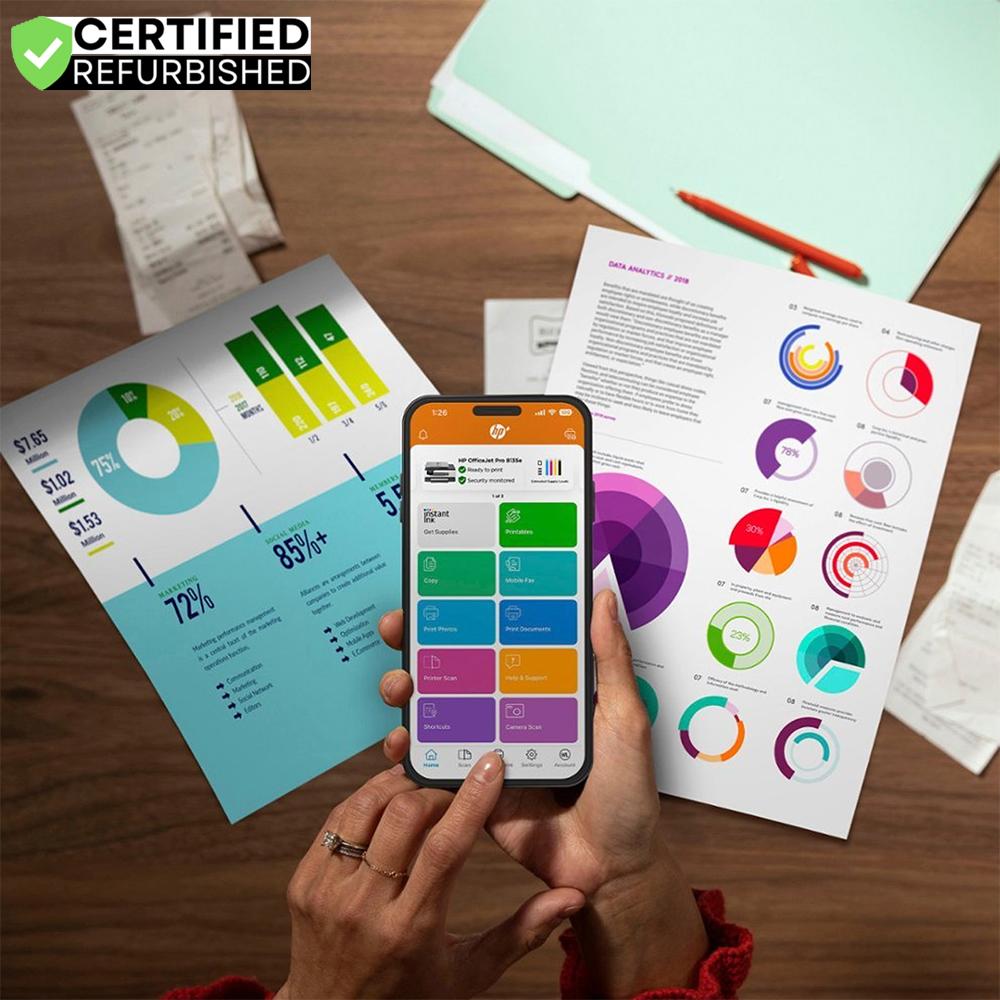 The OfficeJet Pro 8135e from America's Most Trusted Printer Brand, is ideal for home offices for professional-quality color documents, with print speeds of up to 10 ppm color and 20 ppm black.