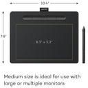 Medium size features a compact footprint (10.4” x 7.8”) and larger active area (8.5 x 5.3”), and is ideal for use with large or multiple monitors and can be setup for both left and right-handed use