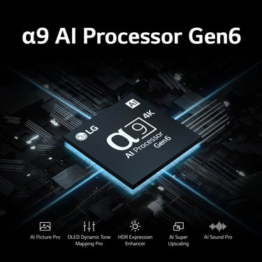 LG OLED’s exclusive α9 processor use AI to detect what you're watching and automatically sharpen and upscale the picture quality to 4K resolution and virtual surround sound.