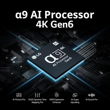 LG OLED’s exclusive α9 processor use AI to detect what you're watching and automatically sharpen and upscale the picture quality to 4K resolution and virtual surround sound.