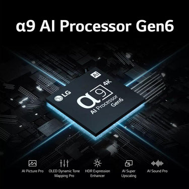 LG OLED’s exclusive α9 processor use AI to detect what you're watching and automatically sharpen and upscale the picture quality to 4K resolution and virtual surround sound.