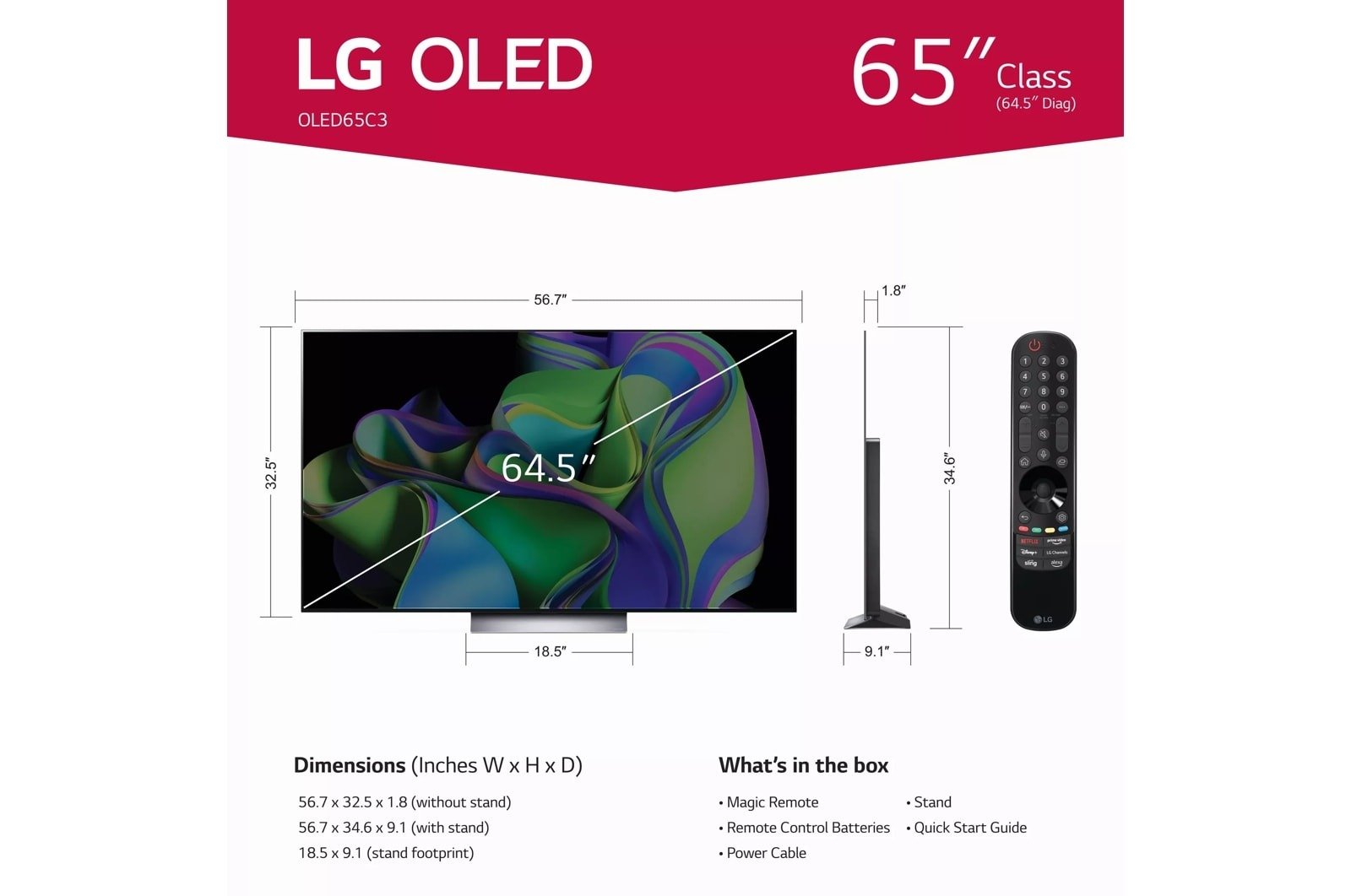 LG OLED evo C3 65 Inch HDR 4K Smart OLED TV (2023) - Refurbished