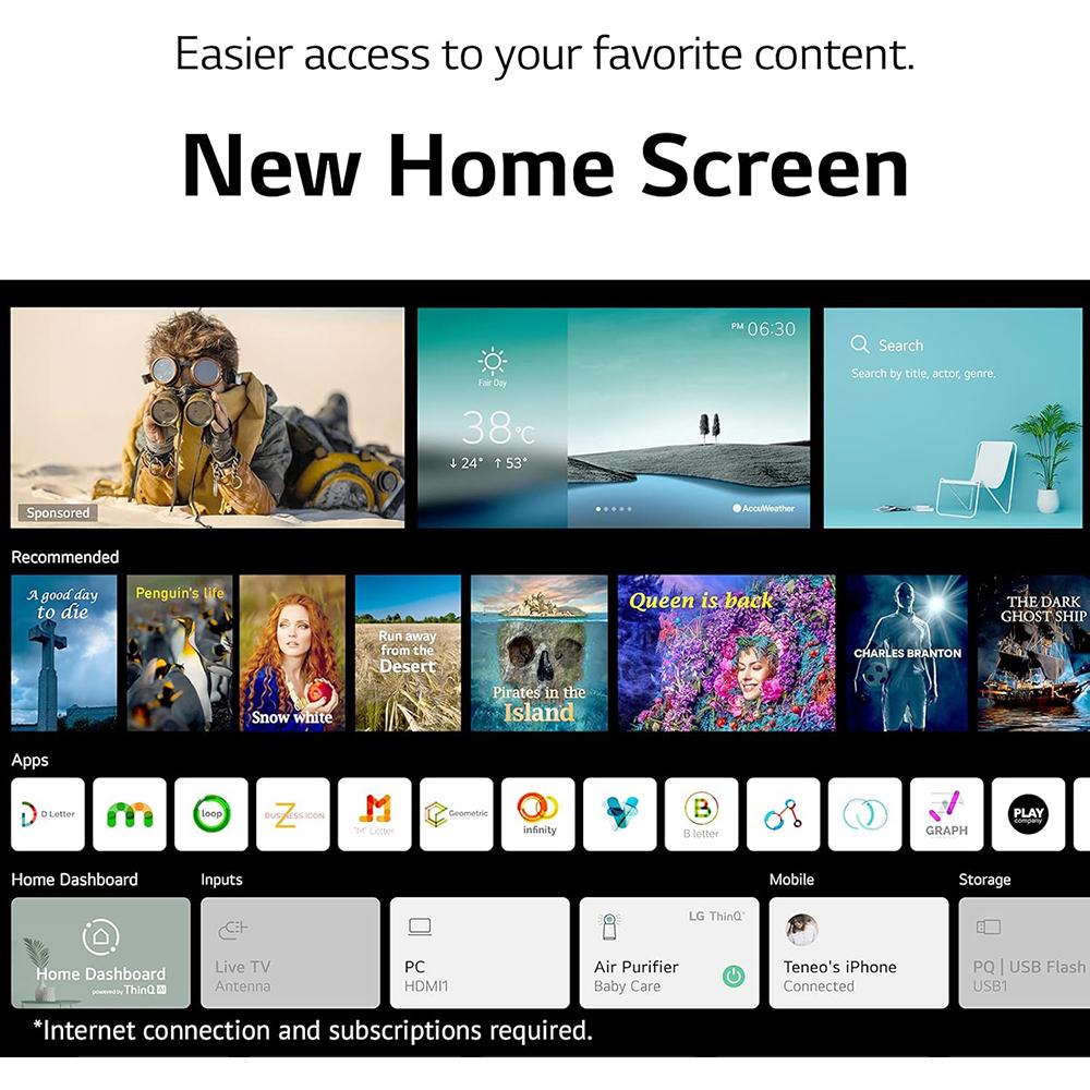 LG ThinQ is here to maximize your TV experience. Choose your favorite voice assistant and control your TV with your voice with an all new home screen to provide more convenience and control.