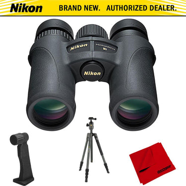 Nikon Monarch 7 10x42 Water/Fog Proof Binoculars + Aluminum Travel Tripod Bundle