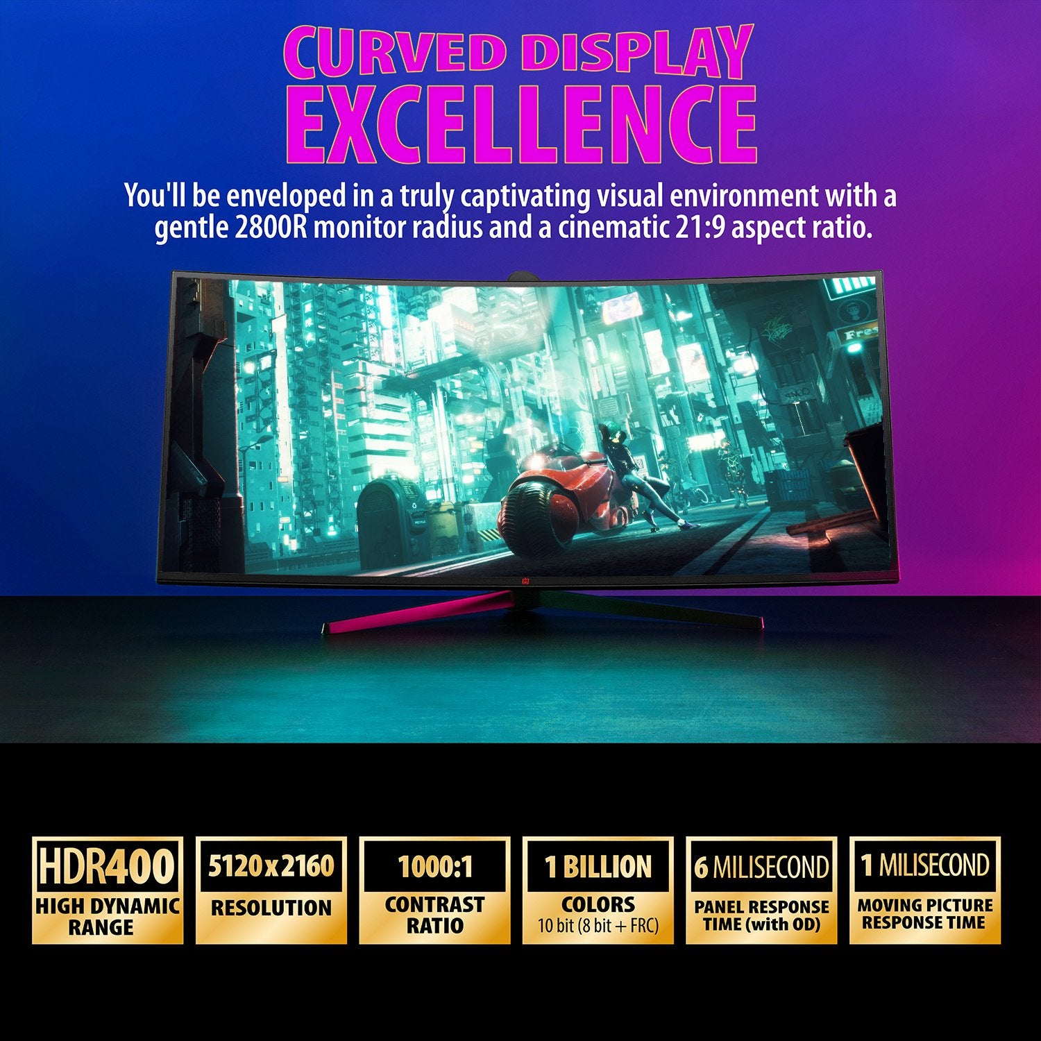 - 21:9 ultrawide provides amazing 5120x2160 resolution
