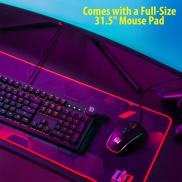 Accessories: 2 headphone storage hooks, 1 cup holder, 31.5" mouse pad included