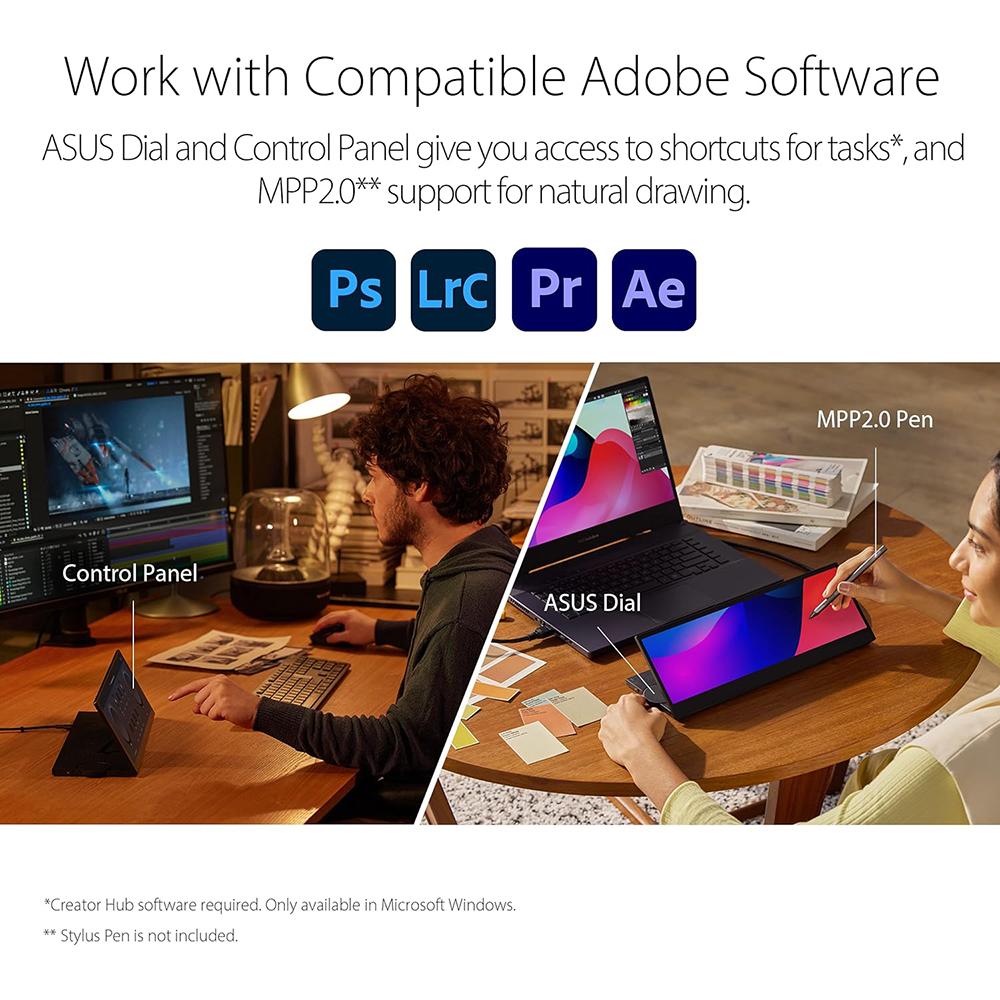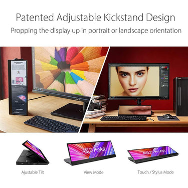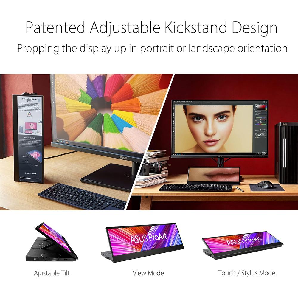 - ASUS ProArt Display 14? Portable Touch Screen (PA147CDV) - 32:9 (1920 x 550), IPS, 100% sRGB, Color Accuracy ?E < 2, Calman Verified, USB-C, Control Panel, MPP2.0 Pen support, Adobe Suite Shortcut