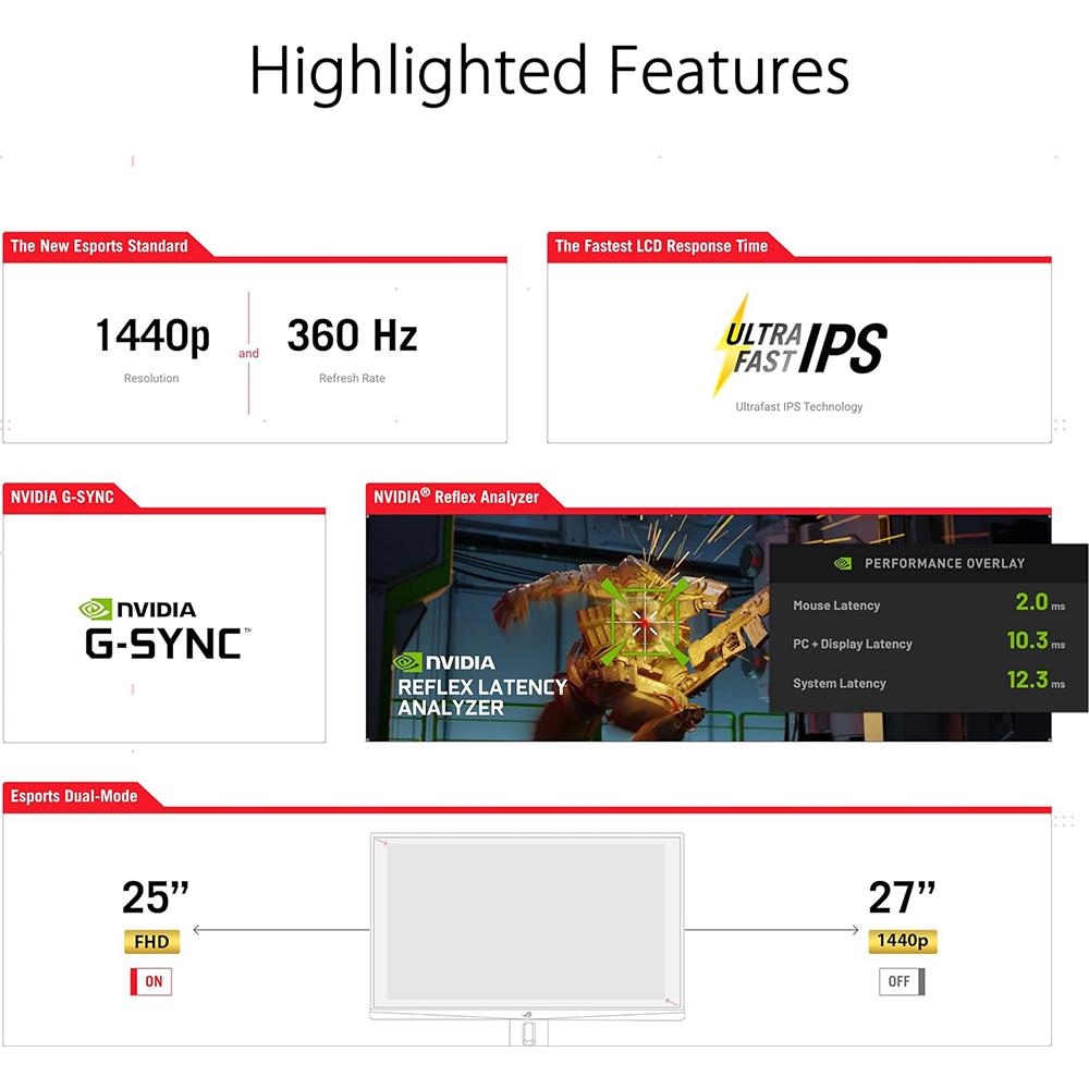 - ASUS ROG Swift 360Hz 27 1440P HDR Gaming Monitor (PG27AQN) - QHD (2560 x 1440), Fast IPS, 1ms, G-SYNC, Eye Care, HDMI, DisplayPort, USB, Ergonomic Design, VESA Wall Mountable, HDR10, DisplayHDR600.