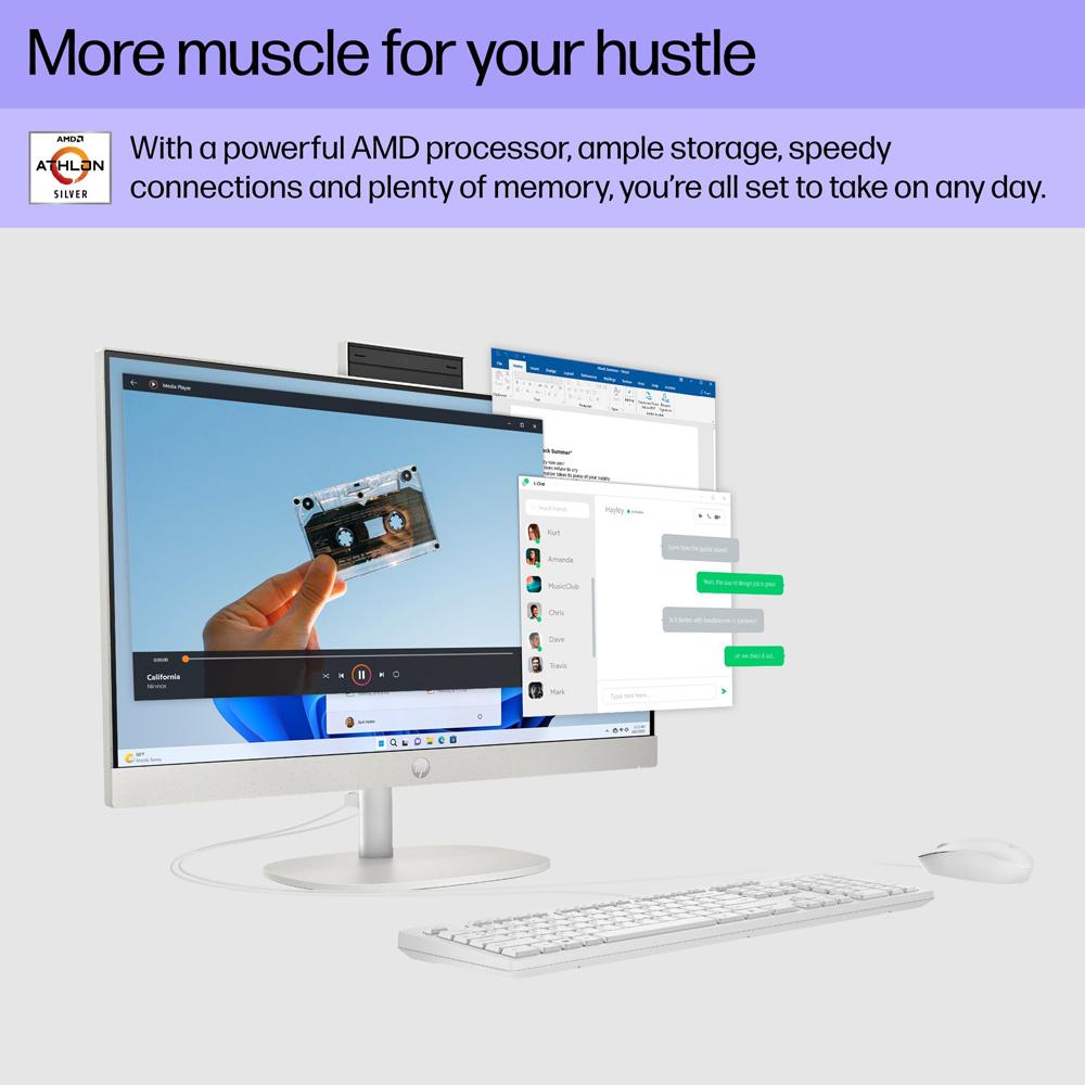 - Hewlett Packard 23.8" All-in-One Desktop PC, FHD Display, AMD Athlon Silver 7120U, 8 GB RAM