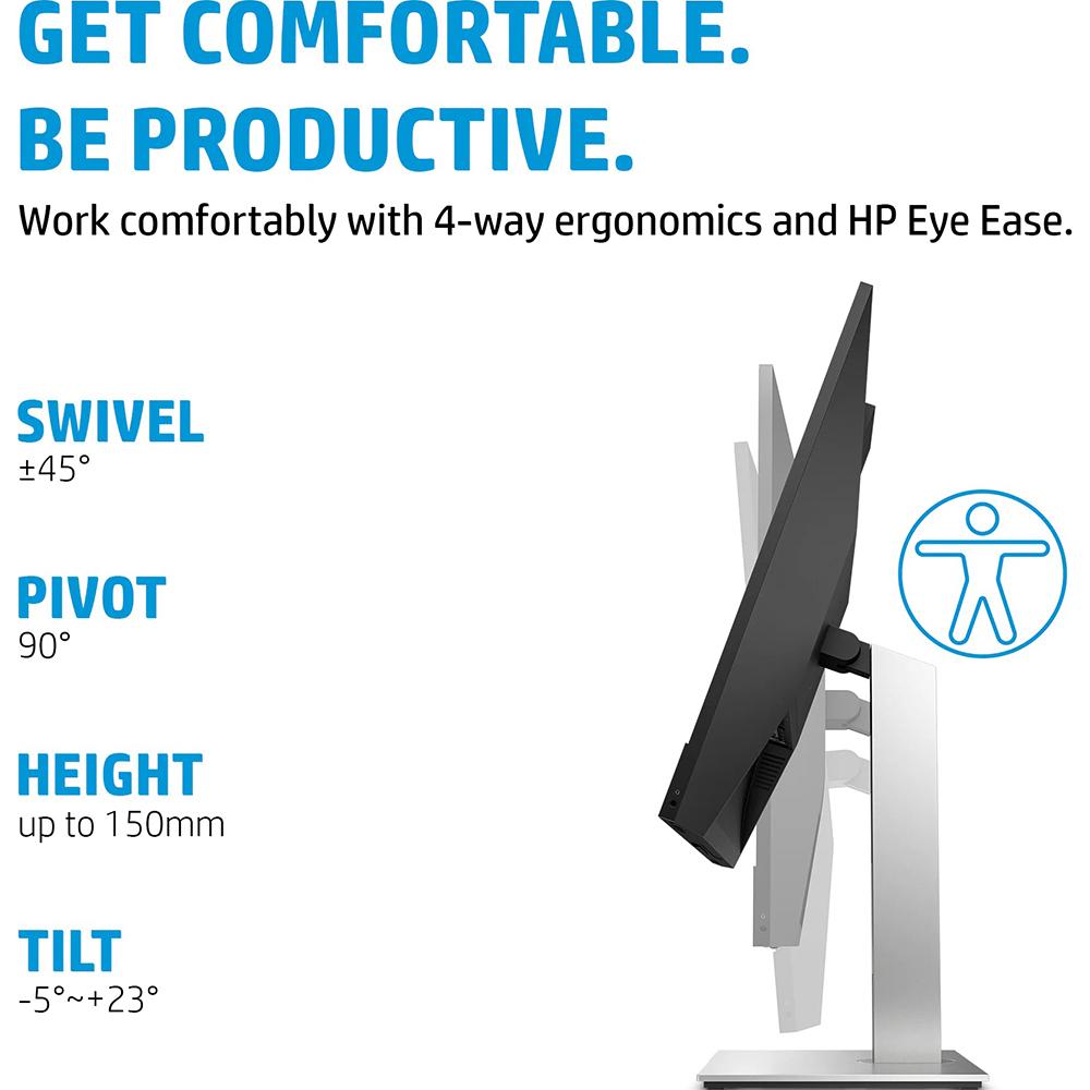 Work effortlessly with 4-way ergonomics and comfortably view your work on a 27-inch diagonal QHD screen that reduces blue light with HP Eye Ease.