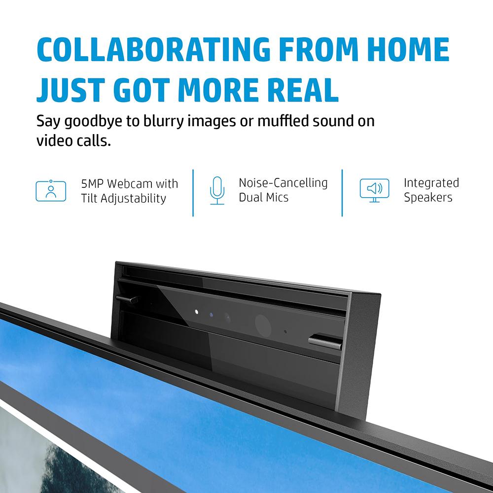Display Features: On-screen controls; Anti-glare; Height Adjust/Tilt/Swivel/Pivot; Integrated speakers; Webcam; HP Eye Ease