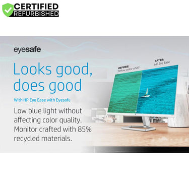From mastering new skills to diving into a hobby, this 23.8" FHD monitor is designed to help keep you focused. With a tilt adjust stand and the Ergonomic Setup Guide in HP Display Center you can customize your comfort. Plus, HP Eye Ease with Eyesafe certification limits blue light to keep your eyes comfortable without impacting color accuracy, so you can do more, longer.