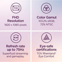 The FHD (1920x1080) resolution renders detailed imagery so your text looks sharp and gaming visuals load seemlessly.