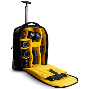 Featuring 3 ways to move, this camera storage case can be used as a wheeled trolley, a backpack, or handbag that is airplane friendly. Simply extend the telescopic trolley handle and you’ll effortlessly wheel your camera gear safely without breaking a sweat. A rear compartment holds two adjustable shoulder straps, giving you the ability to turn your case into a backpack in seconds. If that isn’t enough, the cushy padded grab handle at the top gives you’re the option to turn your case into large handbag.