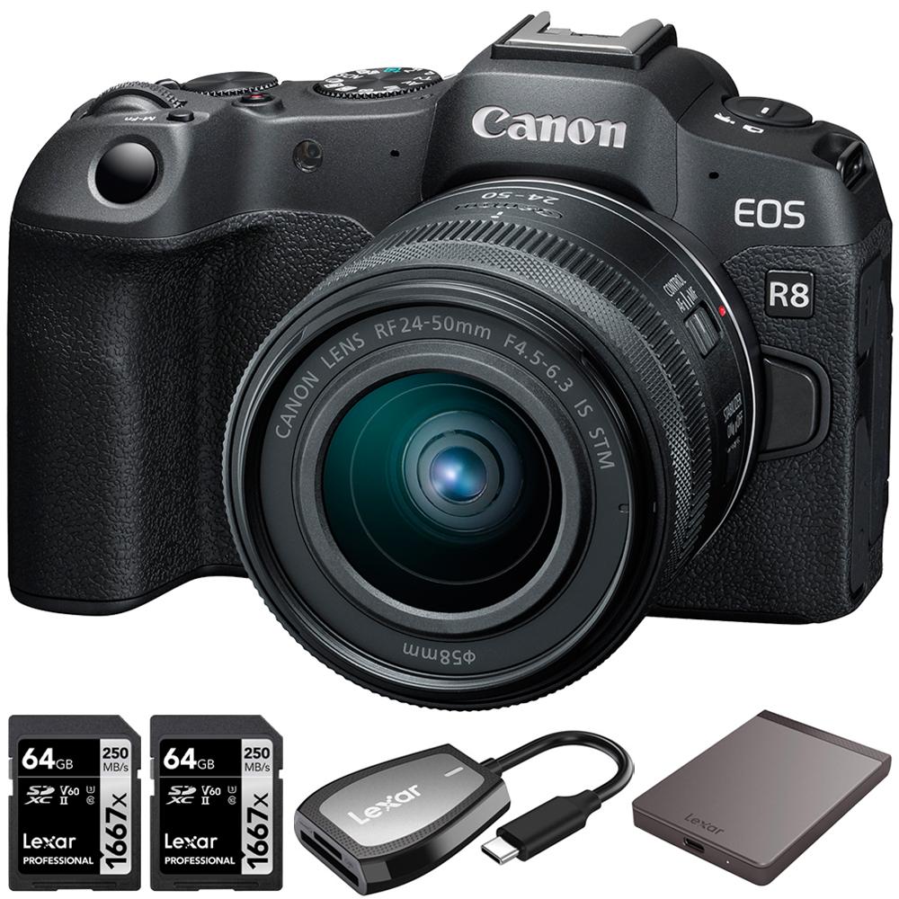 - Canon EOS R8 Full Frame Mirrorless Camera + RF 24-50mm F4.5-6.3 IS STM Lens 5803C012