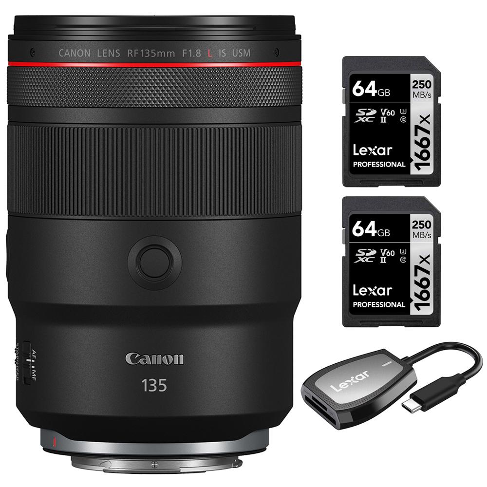 Canon RF 135 F1.8 L IS USM Medium Telephoto Zoom Lens + 2x 64GB Card & Reader Bundle