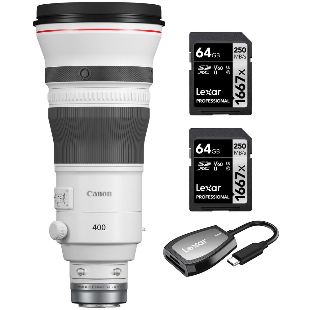 Canon RF 400mm F2.8 L IS USM Super Telephoto Lens + 2x 64GB Card & Reader Bundle