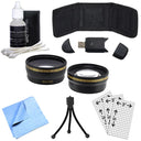Bundle Includes: Microfiber Cloth 3 Piece Cleaning Kit Memory Card Wallet Mini Tripod Screen Protectors Card Reader 52mm Wide Angle Lens 52mm 2x Telephoto Lens