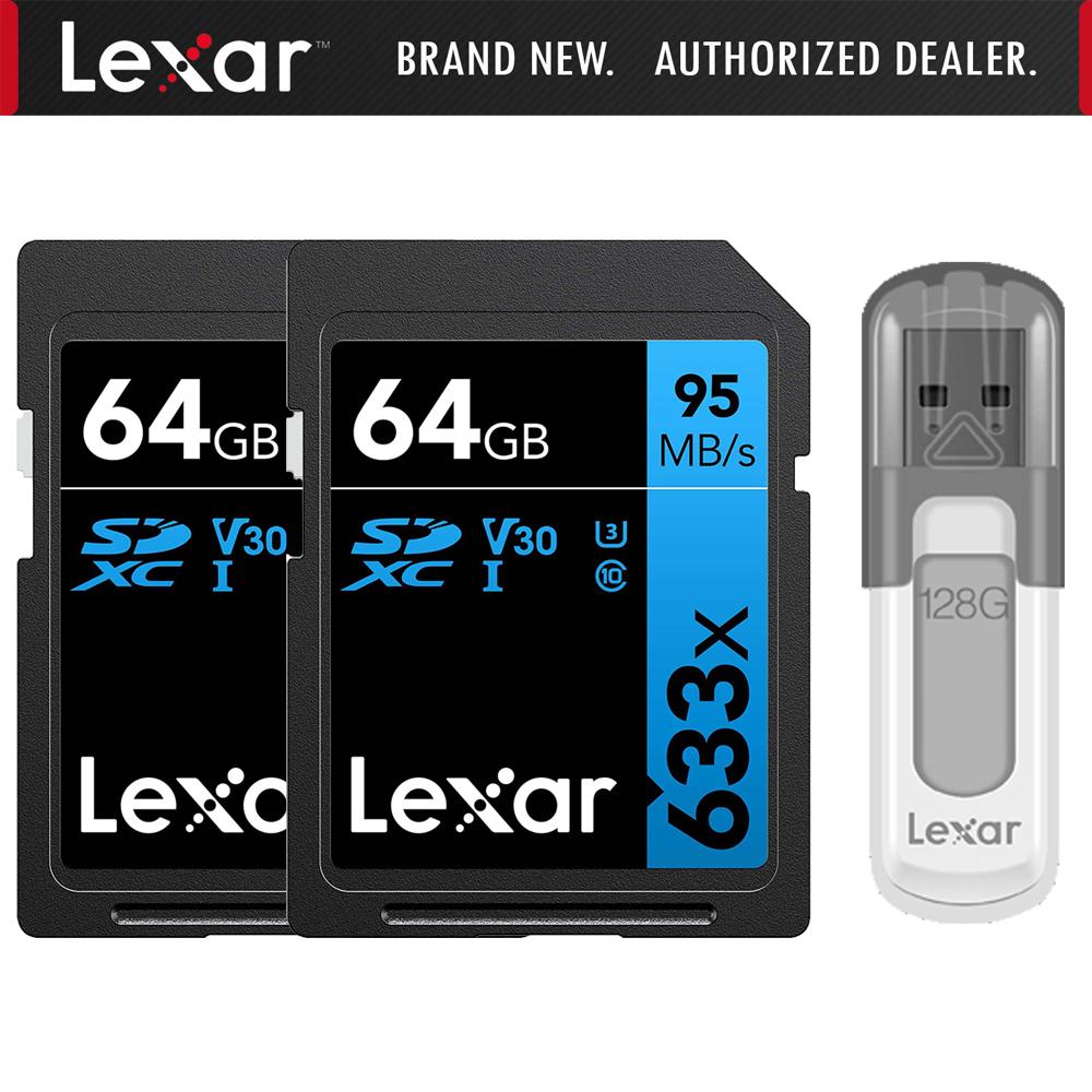 Lexar 2-Pack Professional 633x 64GB UHS-1 Class 10 SDXC Memory Card w/ 128GB USB