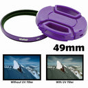 Vivitar 49mm UV Filter and Snap On Cap - Purple
