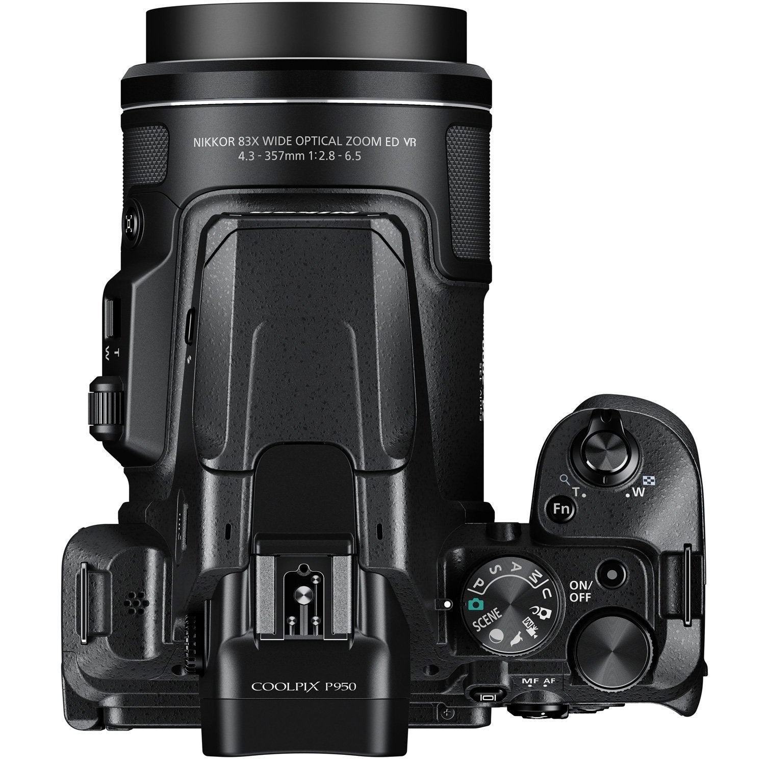 The Focus-mode selector makes switching between MF and AF easy. In addition to the Snap-back zoom and Side zoom controls, the Side dial is conveniently located to control shooting settings. In MF mode, the dial is used to focus manually. When set to AF, it can be assigned to control exposure compensation, white balance or ISO sensitivity. For advanced shooters, a PSAM mode dial is available right on top of the camera, much like a DSLR. Select the COOLPIX P950's aperture and shutter speed to control your shots exactly as you want them. But you don't have to understand exposure controls to get great results-the COOLPIX P950 can do all that work for you.
