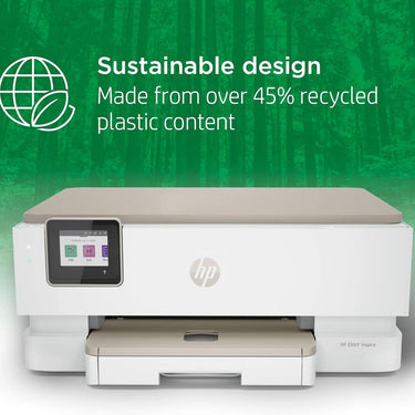 Seamless high-quality photo and document printing with a built-in photo tray. Conveniently print photos in a variety of sizes with a built-in photo tray. Use the HP Smart app for easy multi-tasking - print, scan, copy from any device. Sustainable design made from over 45 percent recycled plastic.