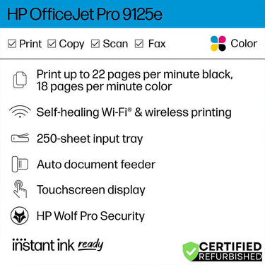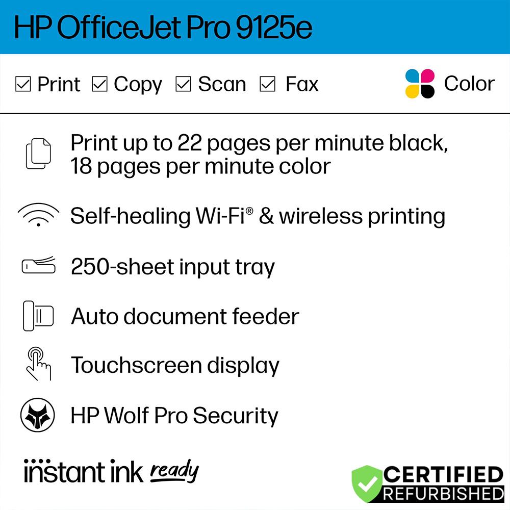 Hewlett Packard OfficeJet 9125e All-in-One Color Printer Renewed + 2 Yr Warranty