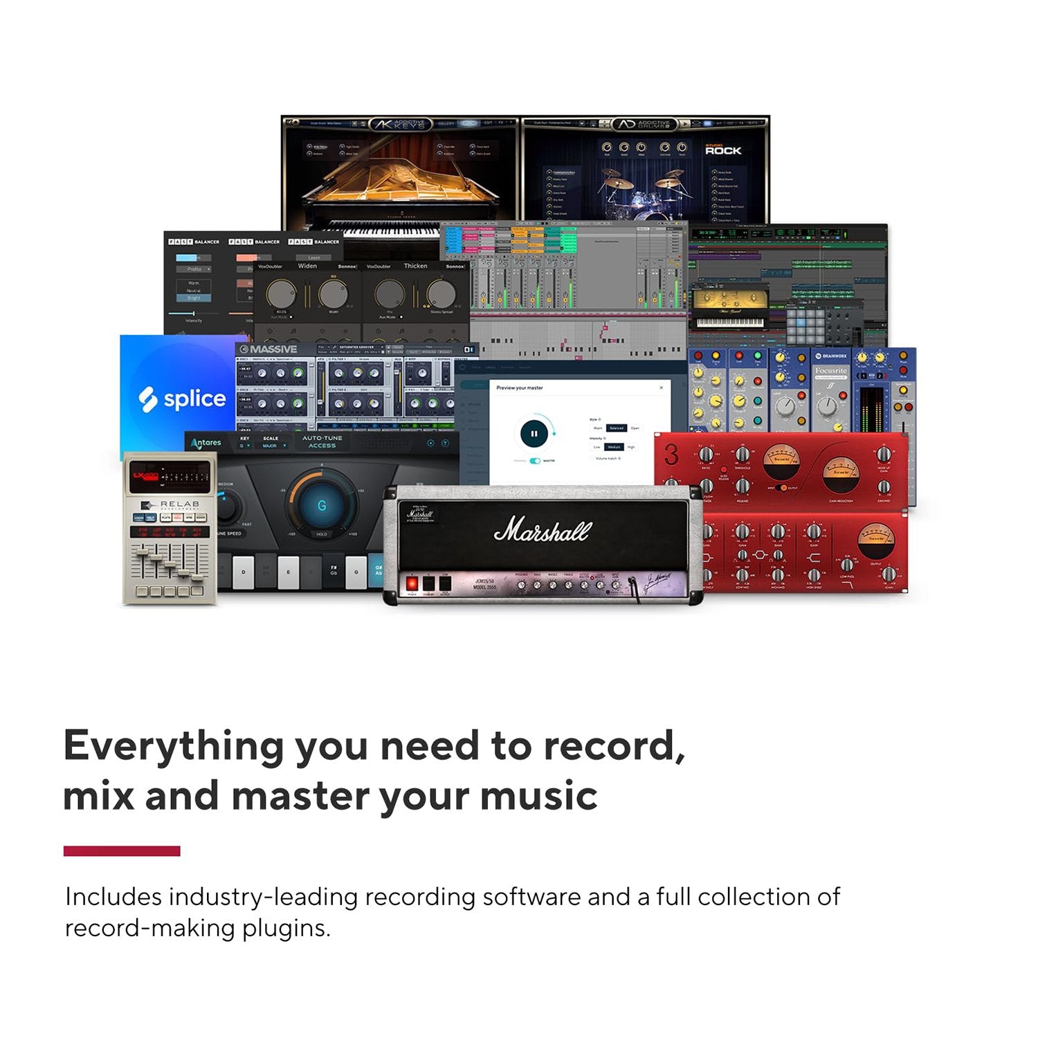 The 4th generation Scarlett Solo Studio comes with Pro Tools Intro+ for Focusrite, Ableton Live Lite, six months of FL Studio Producer Edition, and a whole host of software instruments, processors, effects, and royalty-free samples from some of the biggest names in the business. Discover some of the best-loved studio tools on the planet for writing, recording, mixing, and mastering: