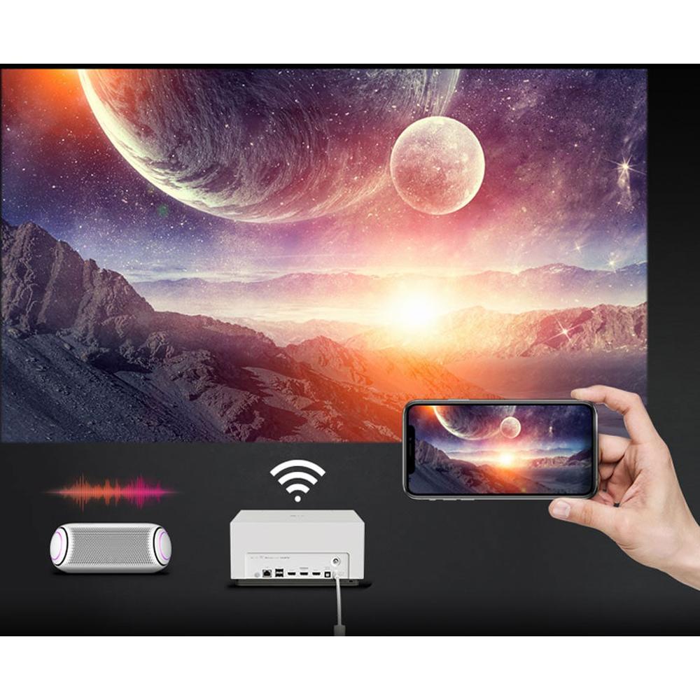 Projectors:Ā Whether you need a portable projector or a mountable solution, our home theater projectors make it easy to watch your favorite content on a big screen. Featuring compact designs and advanced technology, like 4K technology, LG ThinQ AI, the Google Assistant and Alexa built-in, wheel-less LED technology for rich and deep color, and TruMotion technology for more fluid action, our smart projectors will take your viewing experience to a whole new level. Not only that, but with webOS Lite you can access all the latest news, sports, entertainment and more ā right at your fingertips. Stream Netflix, Hulu and Prime Video with a handy onscreen guide for fast, easy access. (Internet connection required.) Go ahead. Host an outdoor movie night, show a photo montage on your living room wall or gather your friends for the big game and project it on a screen that everyone can see ā LG CineBeam projectors make it all possible.