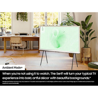 When you’re not using it to watch, The Serif will turn your typical TV experience into bold, artful décor with beautiful backgrounds; Add your aesthetic and upload your own pics, or play DJ and The Serif will groove to the music