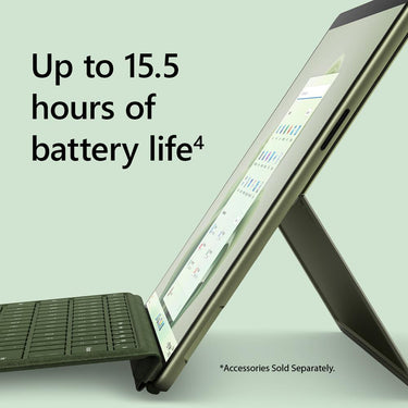 Surface Pro 9 delivers blazing-fast Pro performance with 12th Gen Intel® Core™ processors on select configurations and up to 15.5 hours of battery life.