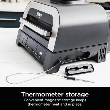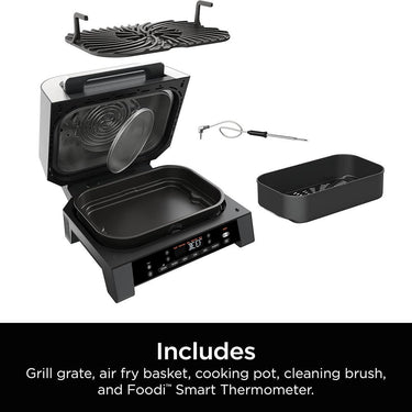 Ninja Smart XL Grill, 9" x 12" Grill Grate, 4-qt. Crisper Basket, 4-qt. Cooking Pot, Foodi Smart Thermometer, Cleaning Brush, & Chef-Created 15 Recipe Book.