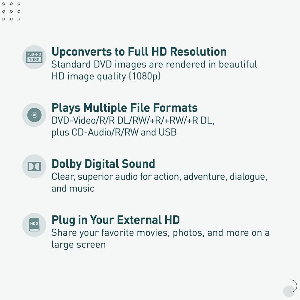 Better Picture Quality: Converts regular DVDs to near HD (1080p) for sharper viewing on HDTVs