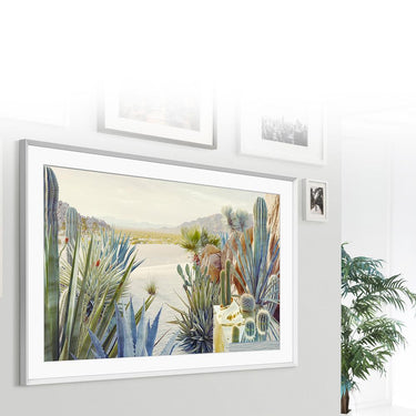 Hang The Frame flush against the wall to look like an actual picture frame. Made to appear like the real thing, the TV has a Slim Fit WallMount; included will all The Frame purchases keeps it as close to the surface as possible. For the ultimate in decor, limit the cable clutter to just the One Invisible Connection cable that goes to the Slim One Connect box to keep all eyes on what’s on actual display.