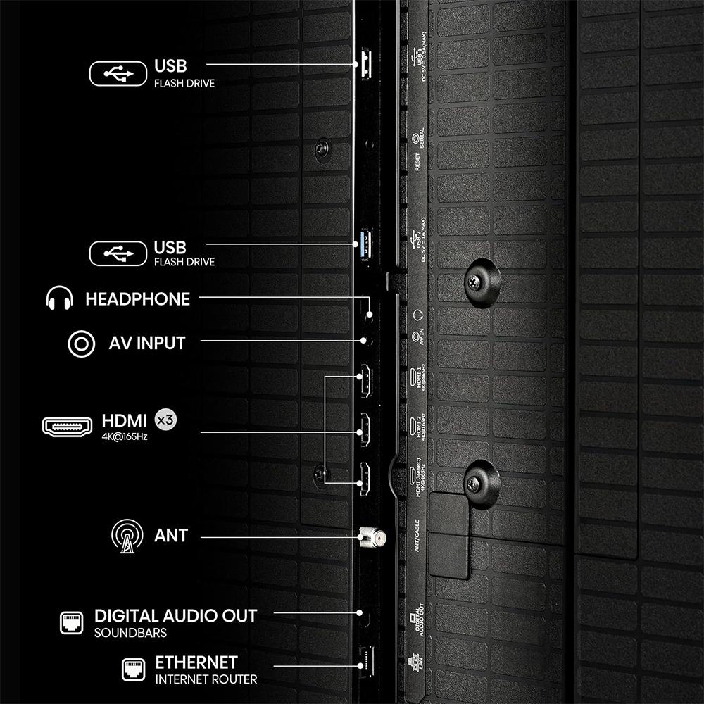 Display TypeLEDResolution4K (2160p)Screen Size Class65 inchesHigh Dynamic Range (HDR)YesHigh Dynamic Range FormatDolby Vision, HDR 10+, HDR 10, Hybrid Log-Gamma (HLG)LED Panel TypeMini-LED QLEDBacklight TypeFull Array Local DimmingRefresh Rate165HzMotion Enhancement TechnologyMotion Rate 480Specific Manufacturer TechnologiesMini-LED Pro with up to 5000 nits, Native 165Hz Panel & Game Mode Ultra, Hi-View AI Engine Pro, 4.1.2 Multi-Channel Surround, Anti-Reflection ProSmart PlatformGoogle TVFeatured Streaming ServicesNetflix, Hulu, Prime Video, Apple TV+, Peacock, YouTube, YouTube TV, Sling TV, Tubi, Twitch, Google Play Movies & TV, Paramount+, MaxNumber of HDMI Inputs (Total)3TV Tuner TypeATSC 3.0 (NextGen TV), NTSC, Clear QAMWorks WithAmazon Alexa, Apple HomeKit, Google AssistantVoice Assistant Built-inGoogle Assistant -