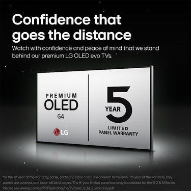 The LG OLED evo G4-Series is powered by the α11 AI Processor for even better picture and performance. Brightness Booster Max produces up to 150% brighter images,* for luminous, high-contrast picture quality, even in well-lit rooms. Display your OLED like a picture with the included wall bracket that creates a flush mount.** When you're not watching, you can display art, photos and other content to blend the LG OLED evo G4 into your surroundings. Search less and stream more, thanks to the next generation of AI technology from LG webOS 24. And with Quick Cards, you can group your favorite apps and use the Magic Remote to easily find exactly what you're looking for—like instant access to over 300 free channels with LG Channels.