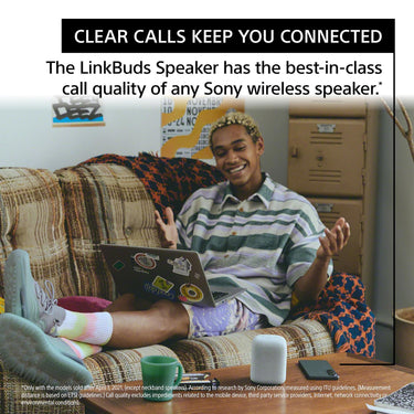 LinkBuds Speaker combines clear, well-balanced audio for a comfortable listening experience with best-in-class call quality ever produced by a Sony wireless speaker.
