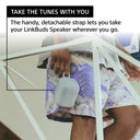 The handy, detachable strap lets you take your LinkBuds Speaker wherever you go, whether that’s into another room or to the kitchen. And with an IPX4 water-resistance rating, you can use it around water without worrying about splashes. Finally, it’s dedicated charging cradle ensures convenient charging.