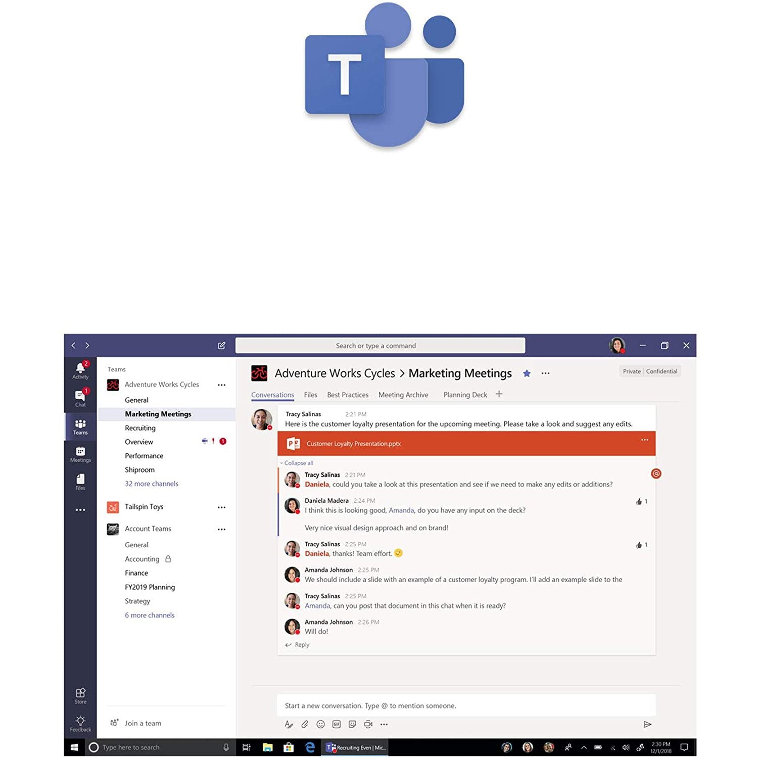 Communicate using text, voice, or video calls with Microsoft Teams. Host meetings on the web using one-step screen sharing and HD video conferencing.