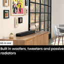 Everything you need in a single soundbar with two woofers and tweeters built in, so you can enjoy rich sound that will fill your room.