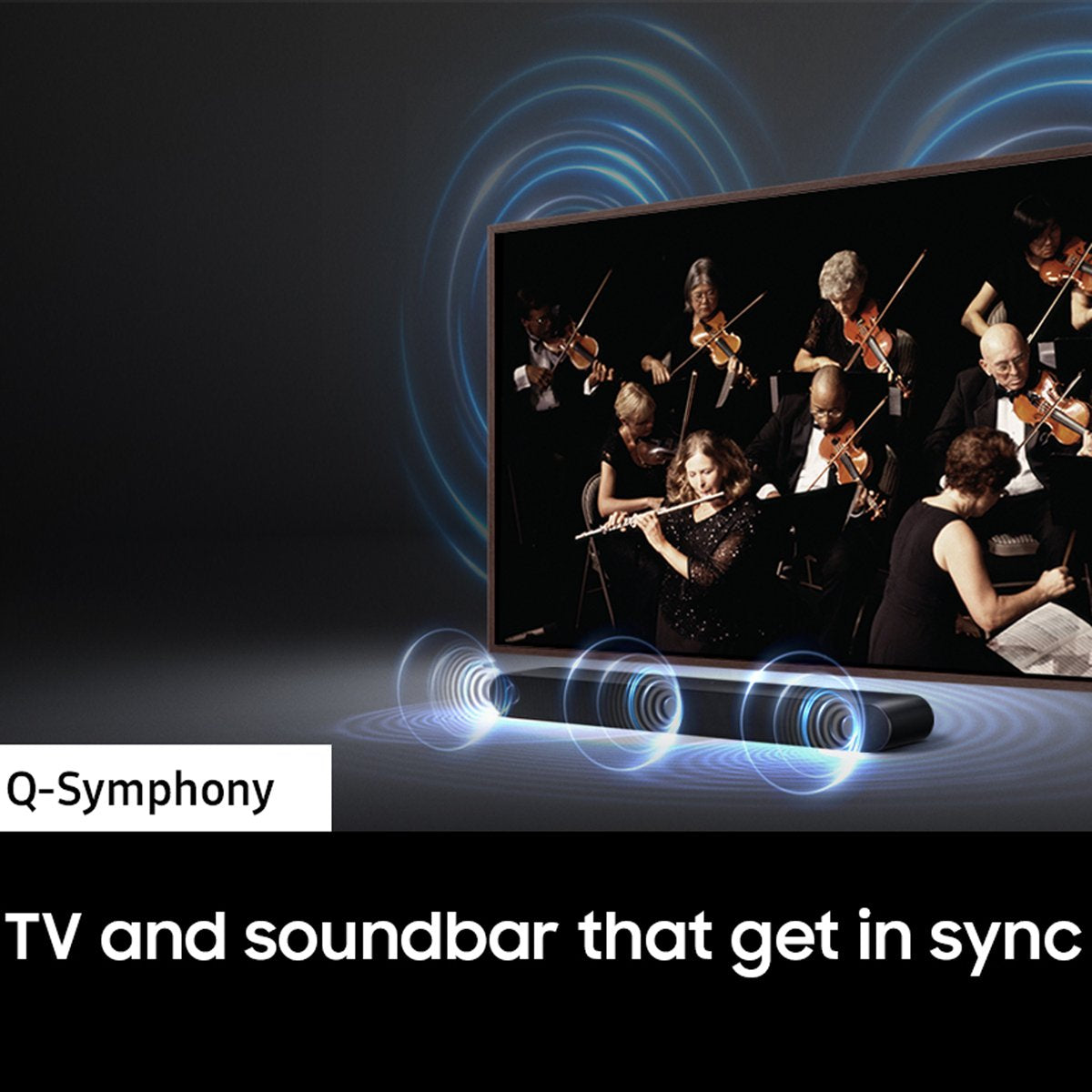 Perfectly synchronized, fully immersive audio floods your room all at once, using every speaker in compatible Samsung TV and soundbars. *Q-Symphony is compatible with select 2021 & 2022 Samsung TV's.