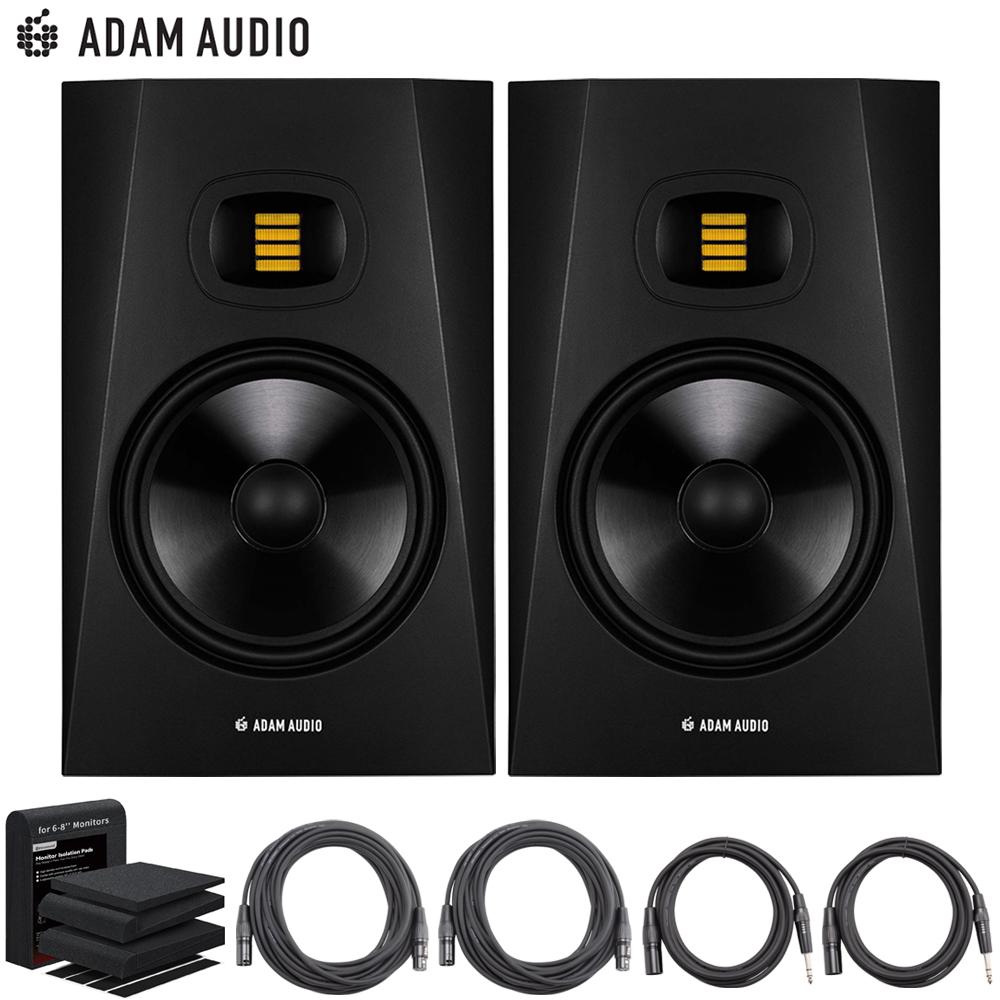 ADAM Audio T8V 8" Studio Monitor, Black (Pair) + Speaker Accessories Bundle