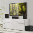 Rounded corners, shock-absorbing rubber feet, steel grille posts and a woven cloth grille ensure a premium look and feel.