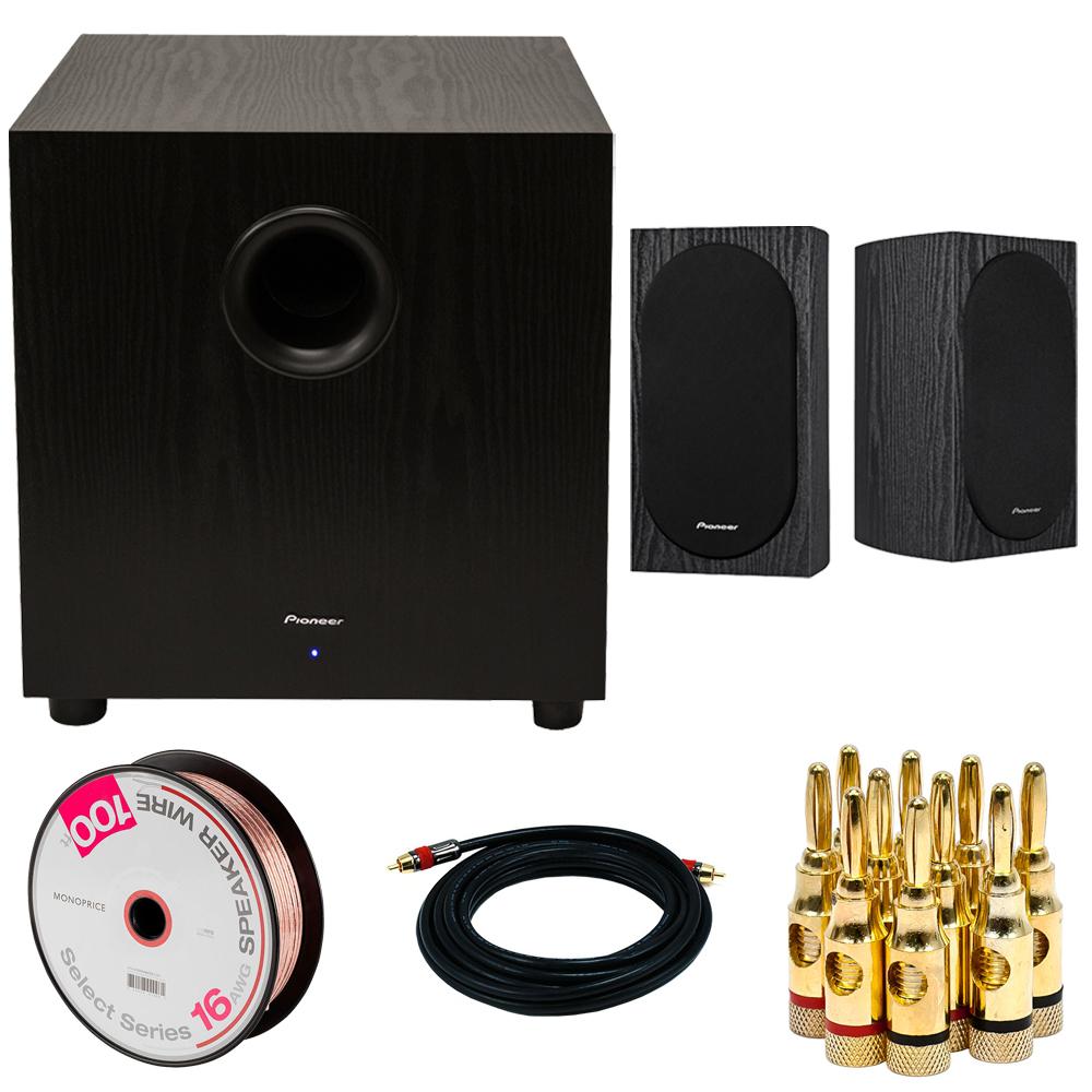 Pioneer SW-10 400W Powered Subwoofer w/ 4" Bookshelf Speakers Bundle