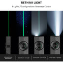 4 Lights, 7 Configurations: As an upgraded version of Arkfeld Pro, the ArkPro flashlight is equipped with a 1,500-lumen floodlight for broad-area lighting, an 800-lumen long-range spotlight (205m reach), a powerful UV light, and a green beam. The green beam features independent control and combines freely with the three light sources - ideal for outdoor adventures, work, and emergencies.