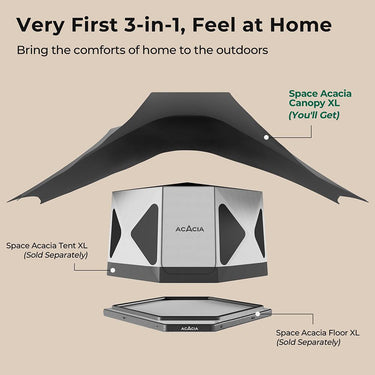 The Acacia SAC4B-23 Canopy XL is a premium four-season canopy designed to expand and elevate your outdoor living space. As part of the Space Acacia modular camping system, it integrates seamlessly with the Space Acacia Tent and Air Floor (sold separately), providing superior shade, warmth, and protection. Whether you’re camping under the summer sun or in brisk winter air, this canopy adapts to changing conditions to keep you comfortable, dry, and secure. Its durable construction, waterproof materials, and spacious coverage make it a go-to shelter for seasoned adventurers and casual campers alike.