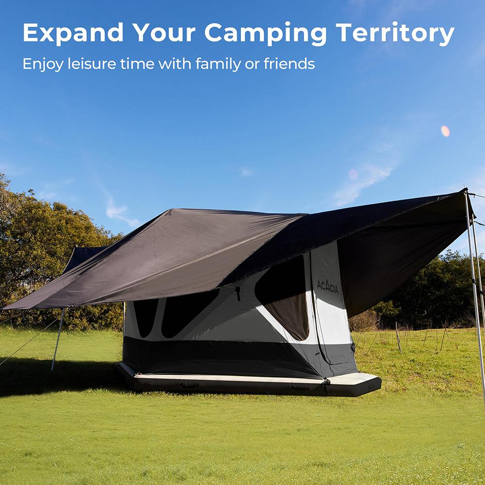 Expanded Outdoor Living Space: Extends the footprint of your tent setup, creating extra room for lounging, cooking, or gear storage while keeping everything protected from the elements.