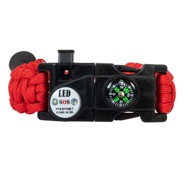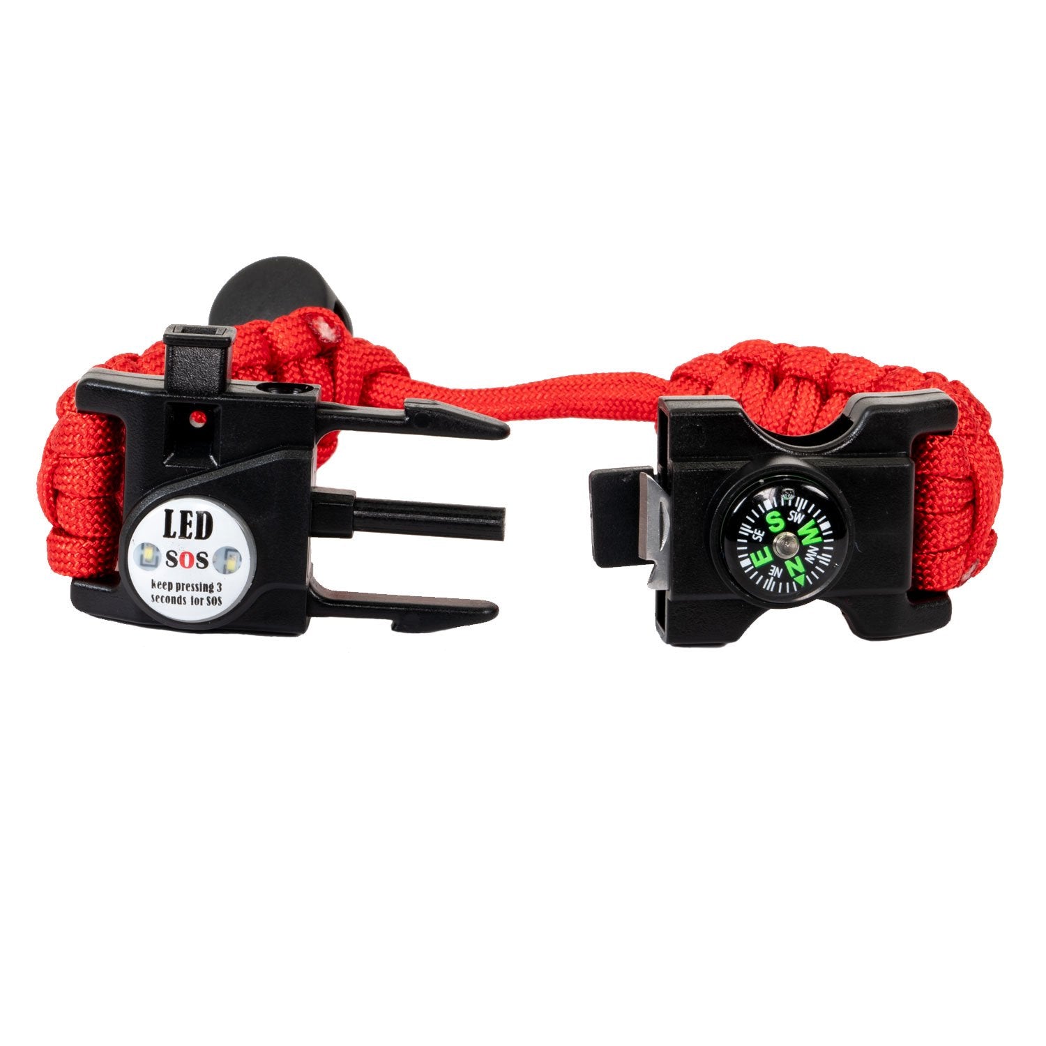 - Deco Gear 2-Pack Tactical Emergency Essentials Paracord Bracelet with SOS LED Light Whistle Camping Flint Multi Tool Functions - Black & Red