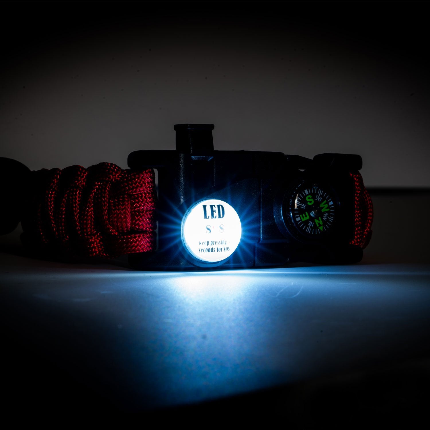 - SOS LED Light - This emergency survival bracelet has an LED light that can be used to help rescuers find you at night!