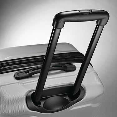 Wider pull handle combine to provide an exceptionally comfortable grip. Integrated, multi-stage aluminum pull handle for extra lightness. Retracting top and side carry-handles remain protected when checking baggage.